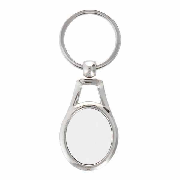 Sublimacijski privjesak izrađen od aluminija u ovalnom obliku. Personalizacija se vrši sublimacijom na aluminijsku pločicu pomoću ravne transfer preše. Nakon tiska, pločica se postavlja na privjesak pomoću dvostrane ljepljive trake – spremno za upotrebu.
