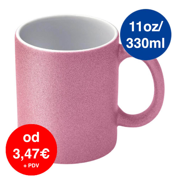Šalica za sublimaciju 11oz / 330 ml – roza s glitter (šljokičastim) efektom