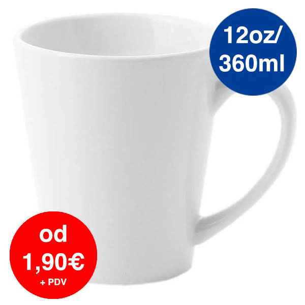 Šalica za sublimaciju 12oz / 360 ml – bijela, latte oblik (konusna)