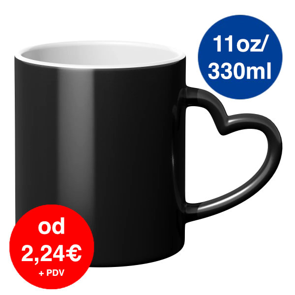 Magična šalica za sublimaciju 11 oz / 330 ml mat crna – ručka u obliku srca
