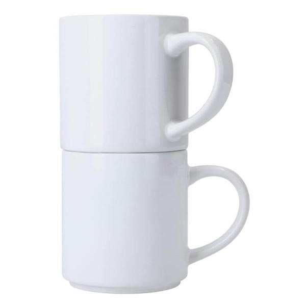 Ova naslagiva sublimacijska šalica jedinstvena je jer se može slagati jedna na drugu – prva takva u svijetu sublimacijskih šalica. Izrađena je od sjajne bijele keramike i presvučena prozirnim polimernim premazom, pa je idealna za sublimaciju. Ispišite je logotipom svoje tvrtke ili je personalizirajte fotografijom ili imenom kupca.