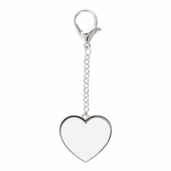 Privjesak izrađen od aluminija sa sjajnim završetkom, namijenjen za personalizaciju sublimacijom. Aluminijska pločica u obliku srca tiska se pomoću ravne transfer preše, a zatim učvršćuje na privjesak obostranom ljepljivom trakom.
