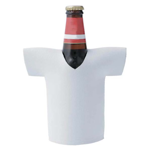 Ovaj sublimacijski hladnjak za boce izrađen je od bijelog i crnog neoprena te je oblikovan poput T-majice. Savršen je za održavanje boce piva ili soka hladnom. Idealan za ljetne roštilje, festivale i piknike!