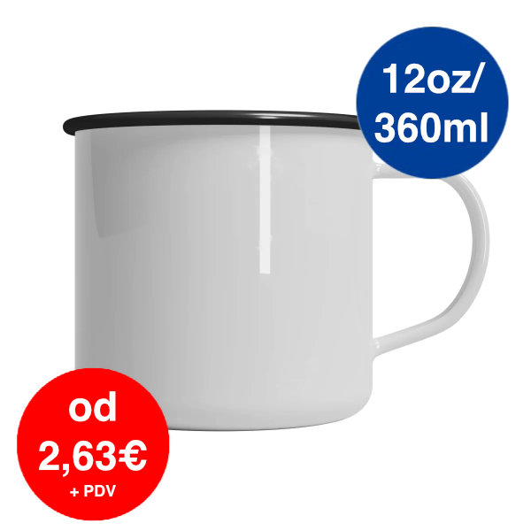 Lagano emajlirano bijelo posuđe kapaciteta 12oz / 360 ml savršeno je za personalizaciju tehnikom sublimacije. Možete ga otisnuti u punoj boji pomoću sublimacijskog pisača, transfer papira i tinti. Zahvaljujući ravnom dnu, stabilno stoji na svakoj podlozi, a mala težina čini ga idealnim za kampiranje i planinarenje.